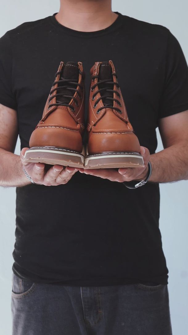 Nuestras botas están fabricadas con materiales de la más alta calidad, utilizando 100% piel nacional, lo que garantiza su durabilidad y resistencia. Además, cuentan con una construcción Goodyear Welt que les proporciona una mayor resistencia y flexibilidad en la suela.
